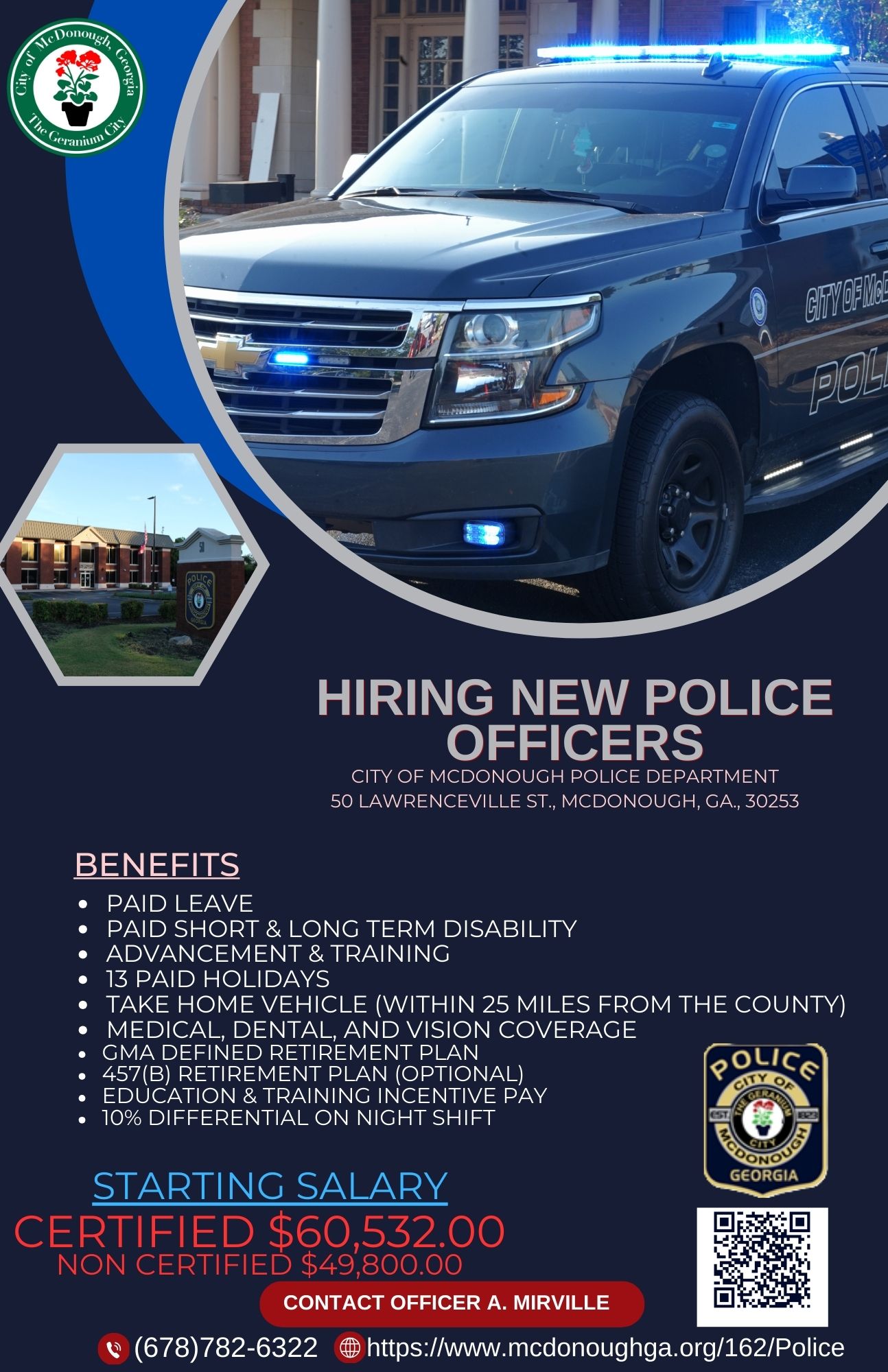 • Complete the Application: Submit a completed application form, which can be obtained online or at the police department. https://www.mcdonoughga.org/211/Job-Openings